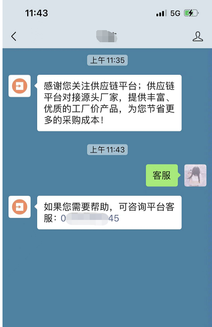 会员自行搜索公众号并关注后,会收到设置的关注回复内容,前端效果如下